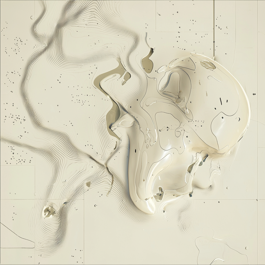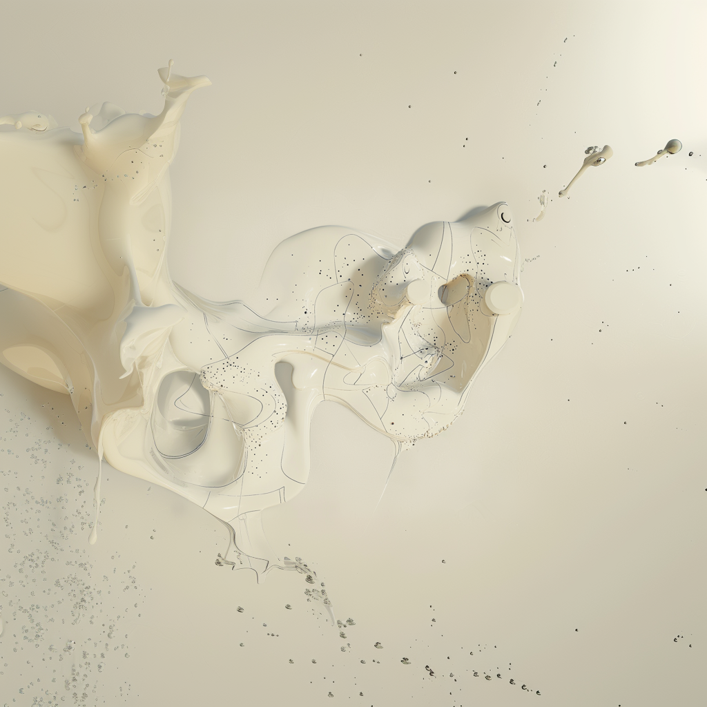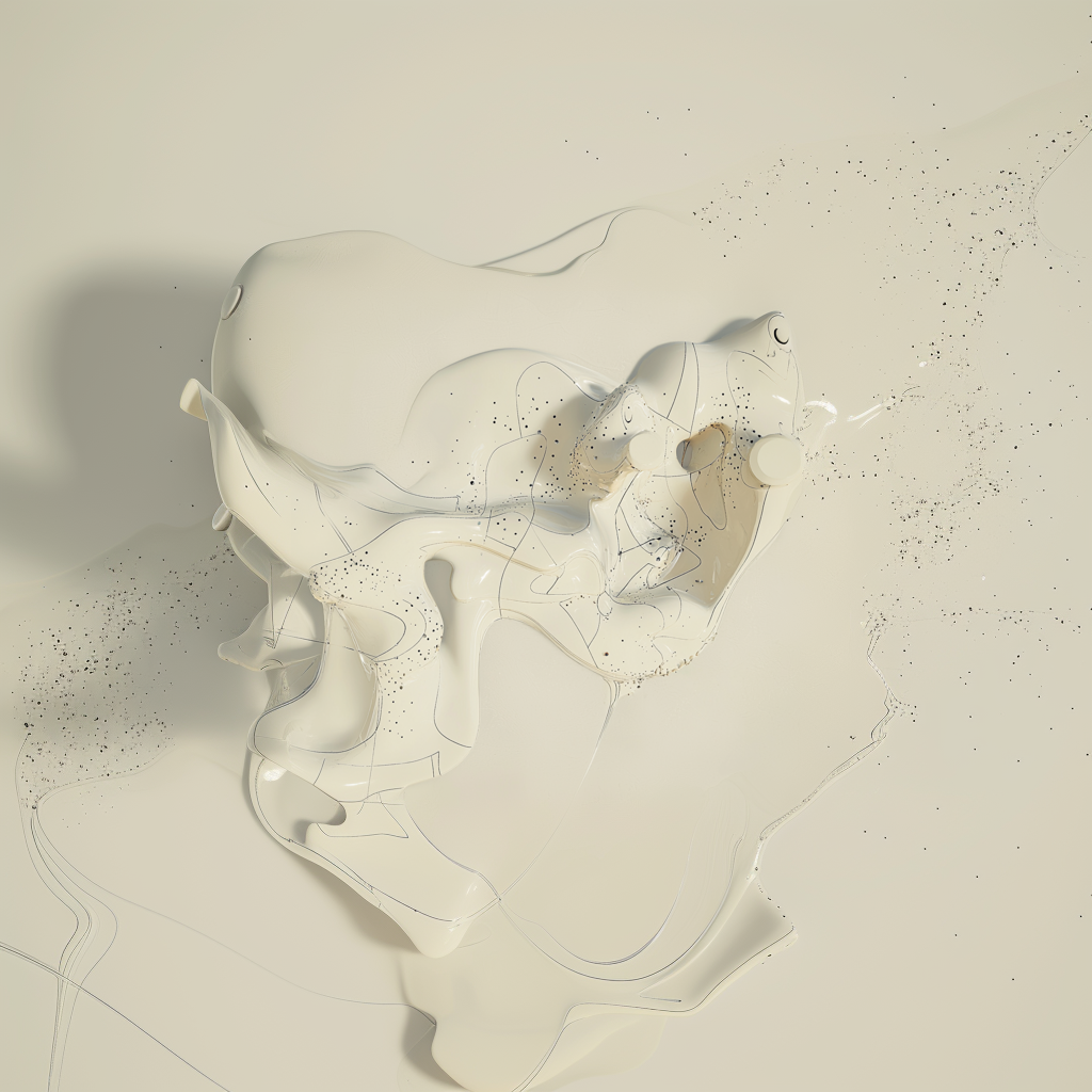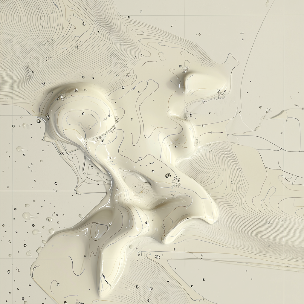 From there, I tried fusing that language with sets of abstract liquid forms I had been generating in another run. After enough button clicking, I started wondering what would happen if something more representational entered the mix, like a human figure. Slowly, bits and pieces of figures began to emerge from the goo.